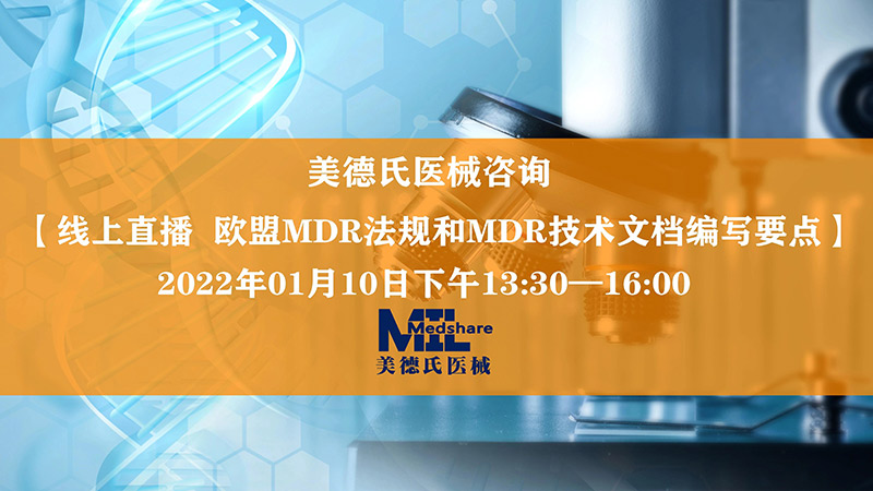 為幫助企業(yè)應(yīng)對(duì)歐盟MDR法規(guī)的申請(qǐng),美德氏醫(yī)械咨詢將于 2022.01.10 日舉辦【歐盟MDR法規(guī)和MDR技術(shù)文檔編寫要點(diǎn)】線上免費(fèi)培訓(xùn),特邀各企業(yè)屆時(shí)收看!
